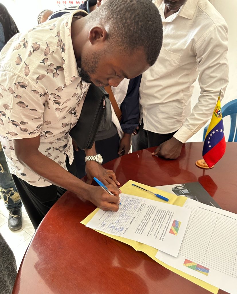 Entre los firmantes se encontraba la embajadora de la República de Cuba, Indira Nápoles Coello; la Brigada Médica Cubana en el Congo y el primer cineasta congolés, Sébastien Kamba, quienes transmitieron a la Embajada bolivariana todo su apoyo y solidaridad en un momento tenso como el actual.