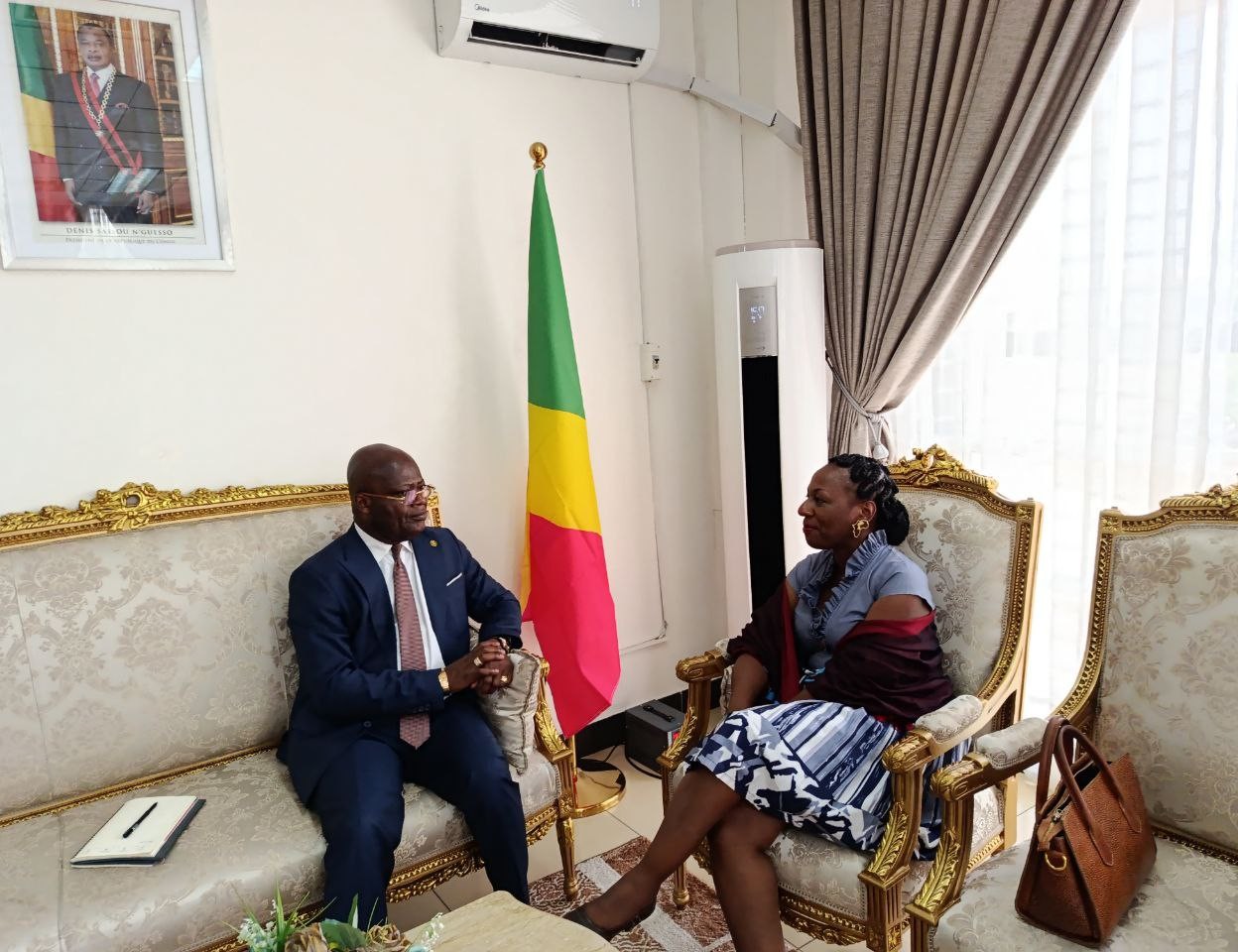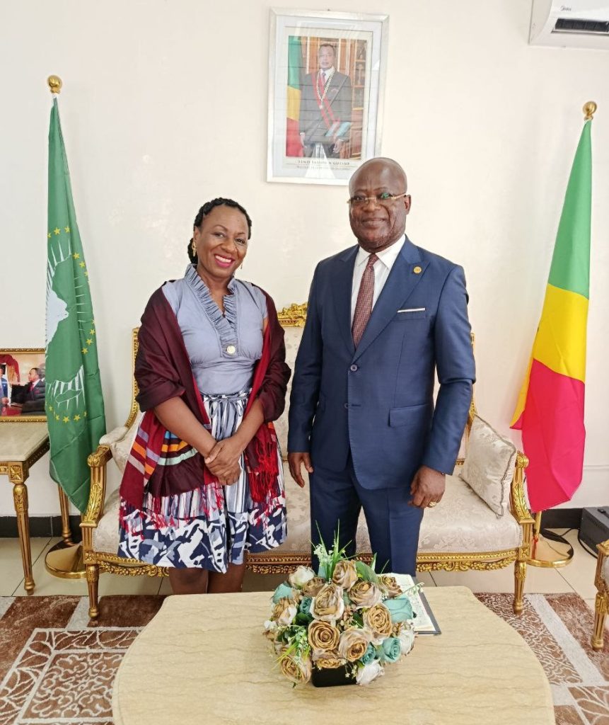 La embajadora de la República Bolivariana de Venezuela, Laura Evangelia Suárez, sostuvo una fructífera reunión con el secretario general del Ministerio de Asuntos Exteriores, de la Francofonía y de los Congoleses en el Extranjero de la República del Congo, Guy Néstor Itoua, en compañía del director de América Latina de la Cancillería congoleña, Marcel Koutala.
