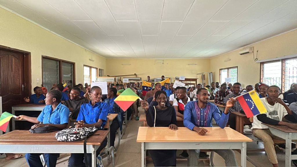 En el marco de la Jornada Mundial en Solidaridad con Venezuela, la embajadora de la nación suramericana ante la República del Congo, Laura Evangelia Suárez, compartió un agradable momento con jóvenes congoleños en un liceo de Brazzaville.