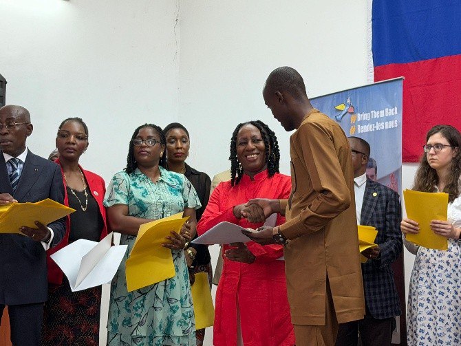 En el acto estuvieron presentes el ministro de Educación Preescolar, Primaria, Secundaria y Alfabetización, Jean Luc Mouthou; y la ministra de Pequeñas y Medianas Industrias y Artesanía, Jacqueline Lydia Mikolo; junto a representantes de comunidades extranjeras, amigos de Venezuela.